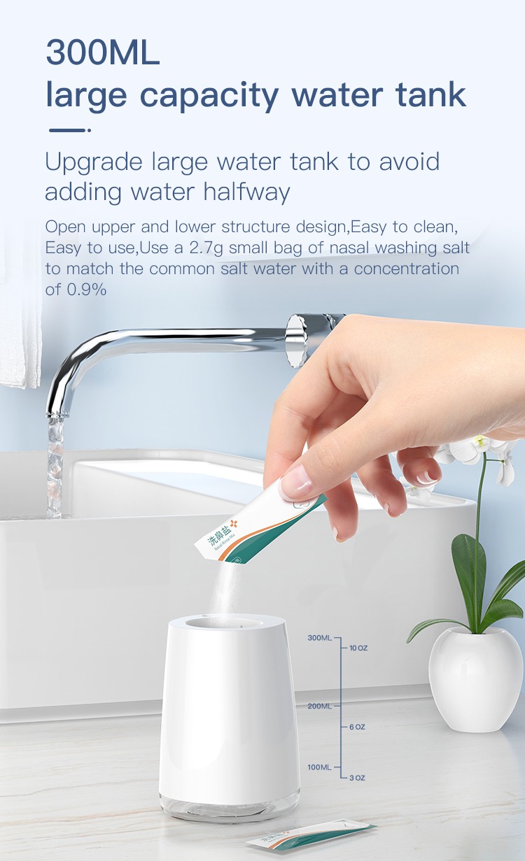 【200 мл резервуар для воды】 Усовершенствованная система промывания носовых пазух имеет съемный резервуар с точной шкалой на 200 мл, поэтому вы можете наслаждаться непрерывным сеансом разблокировки пазух. Очень просто в использовании, одна клавиша для начала замечательного путешествия по промыванию носа. |