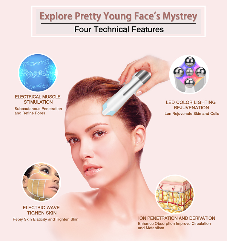 КАКОВЫ ПРЕИМУЩЕСТВА? -- Косметологический аппарат — это многофункциональное устройство против старения, которое включает в себя радиочастотную (РЧ) технологию с терапией красным/синим светом, EMS для уменьшения линий и морщин, улучшения проникновения в кожу, абсорбционных способностей и т. д.