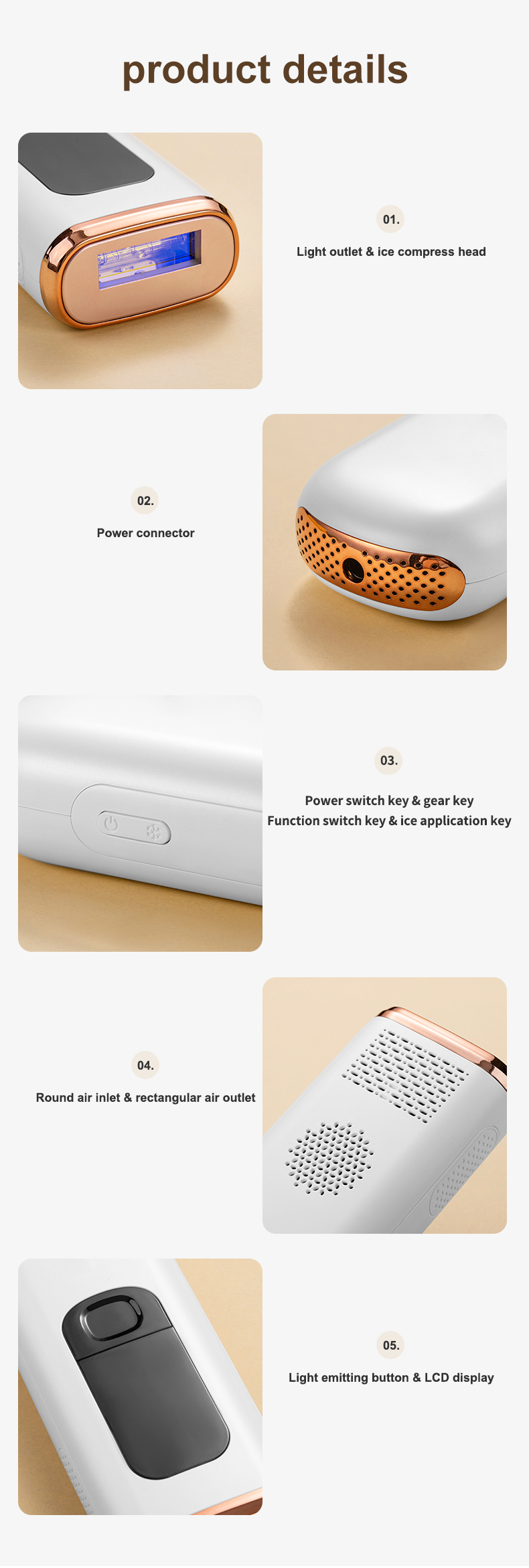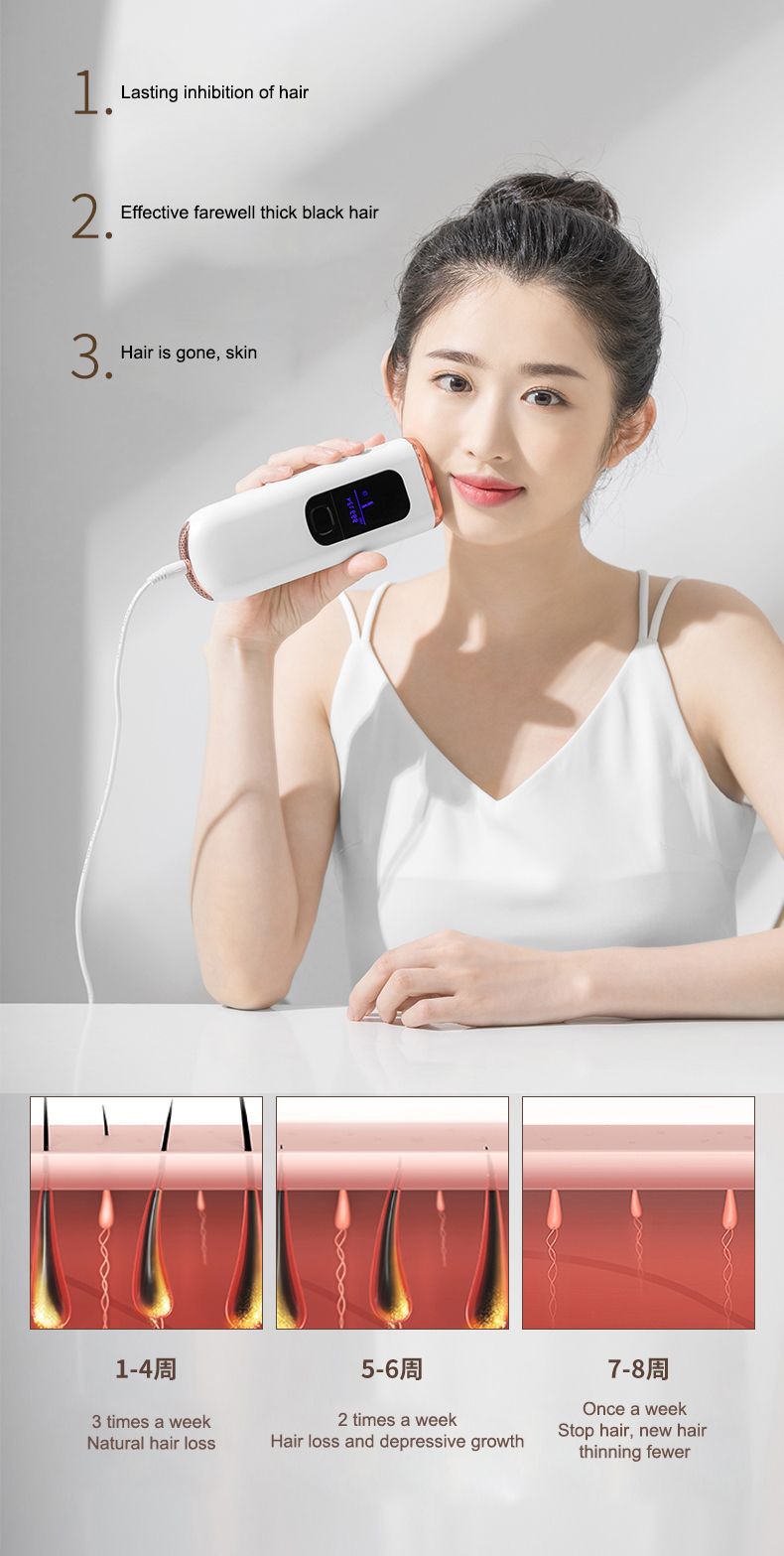 (Примечание: 1. Не подходит для татуированной и чрезмерно загорелой кожи, раненых участков и беременных. 2. Это подключаемое устройство, пожалуйста, держите устройство всегда подключенным к источнику питания во время лечения.)