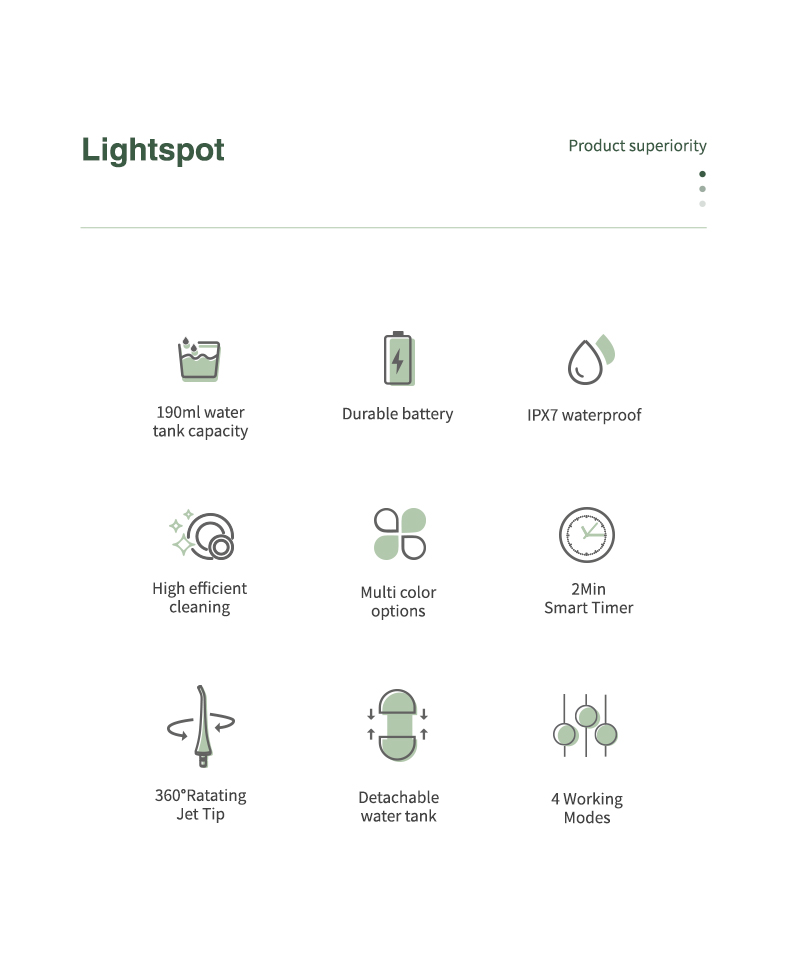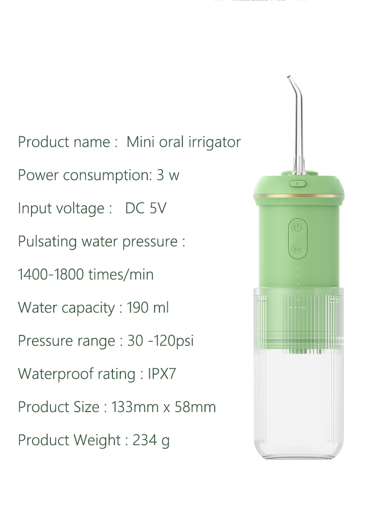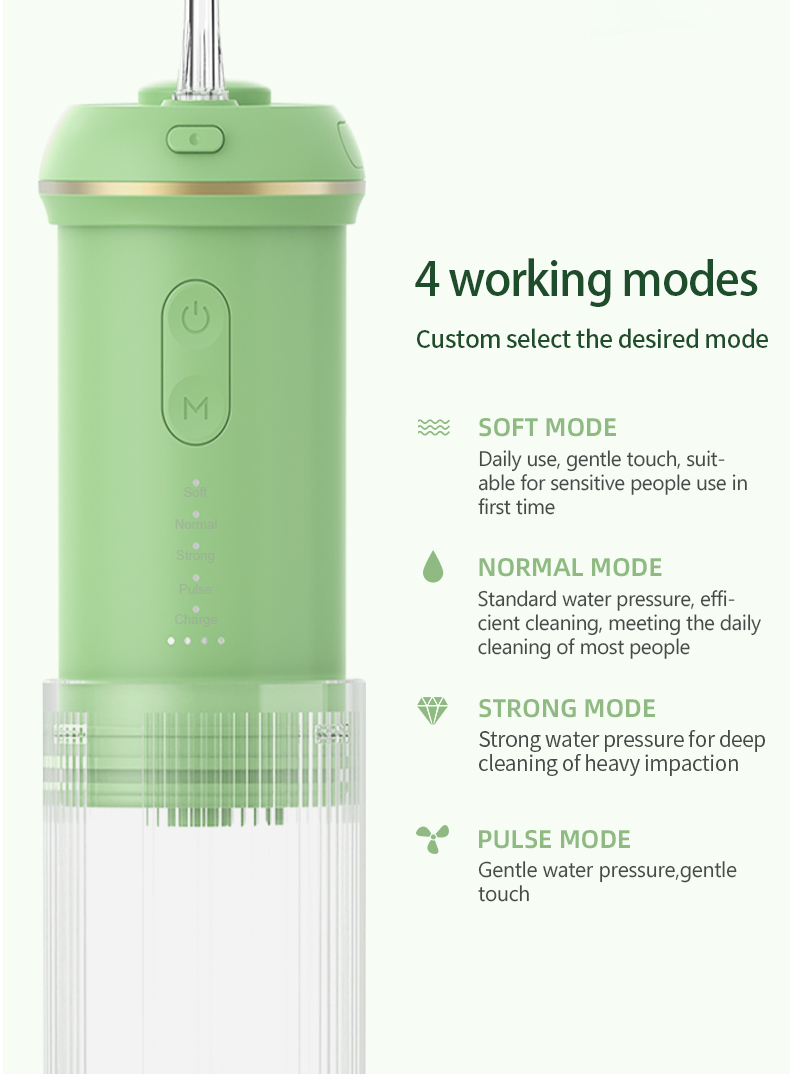 Глубокая очистка под сильным давлением: ирригатор использует новейшую импульсную технологию, предлагающую 4 режима с диапазоном давления от 30 до 90 фунтов на кв. дюйм и частотой импульсов 1400–1800 раз в минуту, обеспечивая подачу воды высокой интенсивности, которая удаляет 99,99% зубной эмали, специально разработан для пародонтита и брекетов.