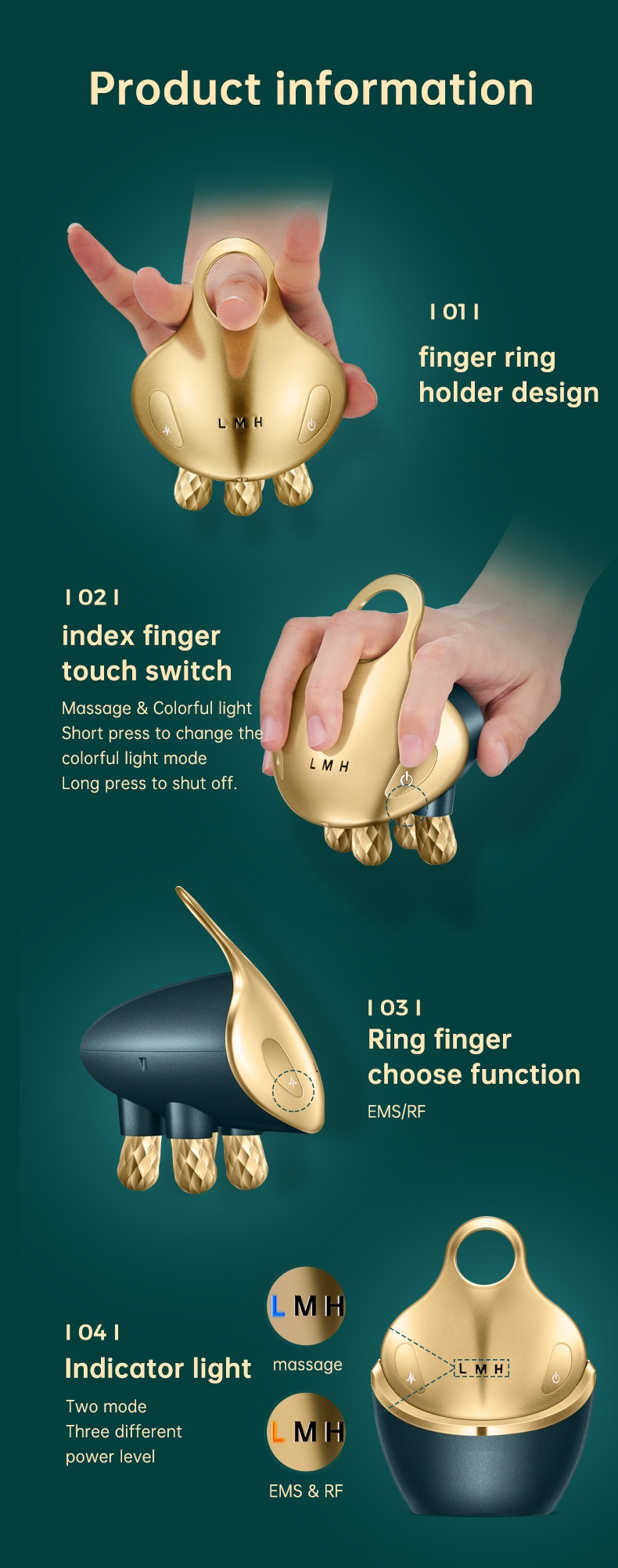 2. Многофункциональный массаж + EMS + RF, 3 скорости и регулируемая интенсивность.
