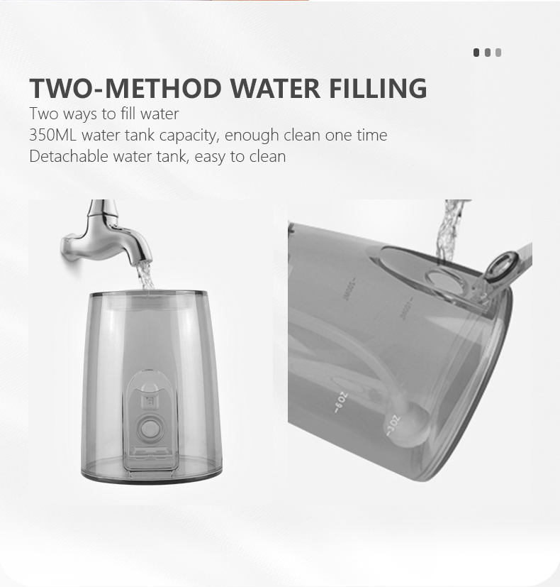 Эта водная зубная нить оснащена модернизированным резервуаром для воды емкостью 350 мл, что в два раза больше, чем у других старых моделей, что устраняет необходимость в частой дозаправке и делает чистку полости рта более удобной и эффективной.