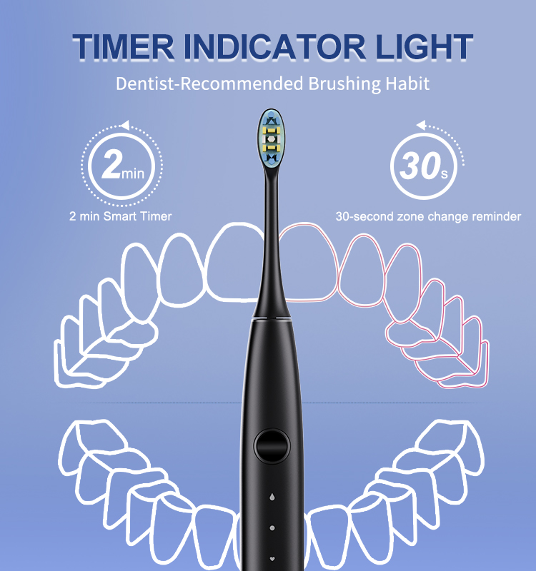 - УМНЫЙ ТАЙМЕР ВИБРАЦИОННОГО УВЕДОМЛЕНИЯ - Встроенный интеллектуальный таймер с интервалом в 30 секунд напоминает вам о необходимости перейти к следующему квадранту рта, а всего за 2 минуты (4 квадранта) это настоятельно рекомендуется профессиональными стоматологами как правильный способ чистки зубов.