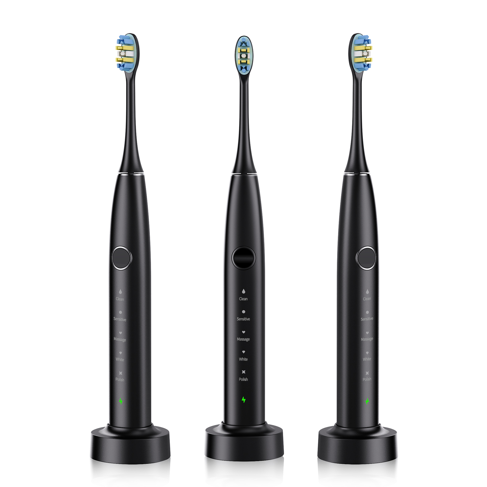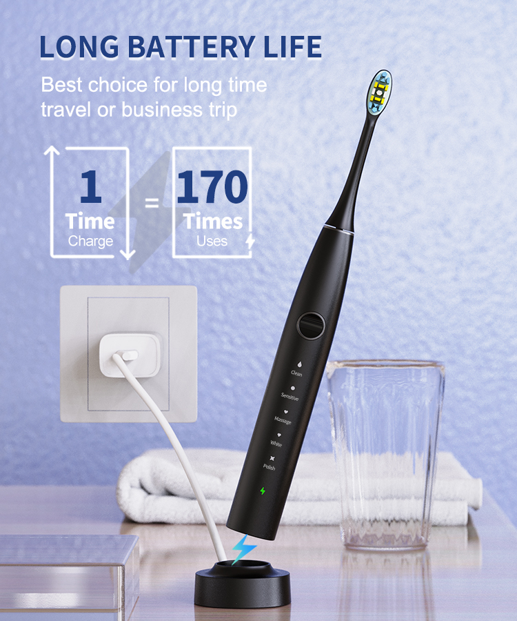 - МОЩНАЯ ЗВУКОВАЯ ЧИСТКА - Новая модернизированная электрическая зубная щетка с новейшей звуковой технологией вдоль линии десен для исключительной очистки и удаления до 125% зубного налета, отбеливания зубов и улучшения здоровья полости рта за две недели лучше, чем при использовании обычной зубной щетки. Мы обещаем: 1 год гарантии, если у вас возникнут какие-либо проблемы, свяжитесь с нами, мы предоставим вам удовлетворительное обслуживание клиентов.